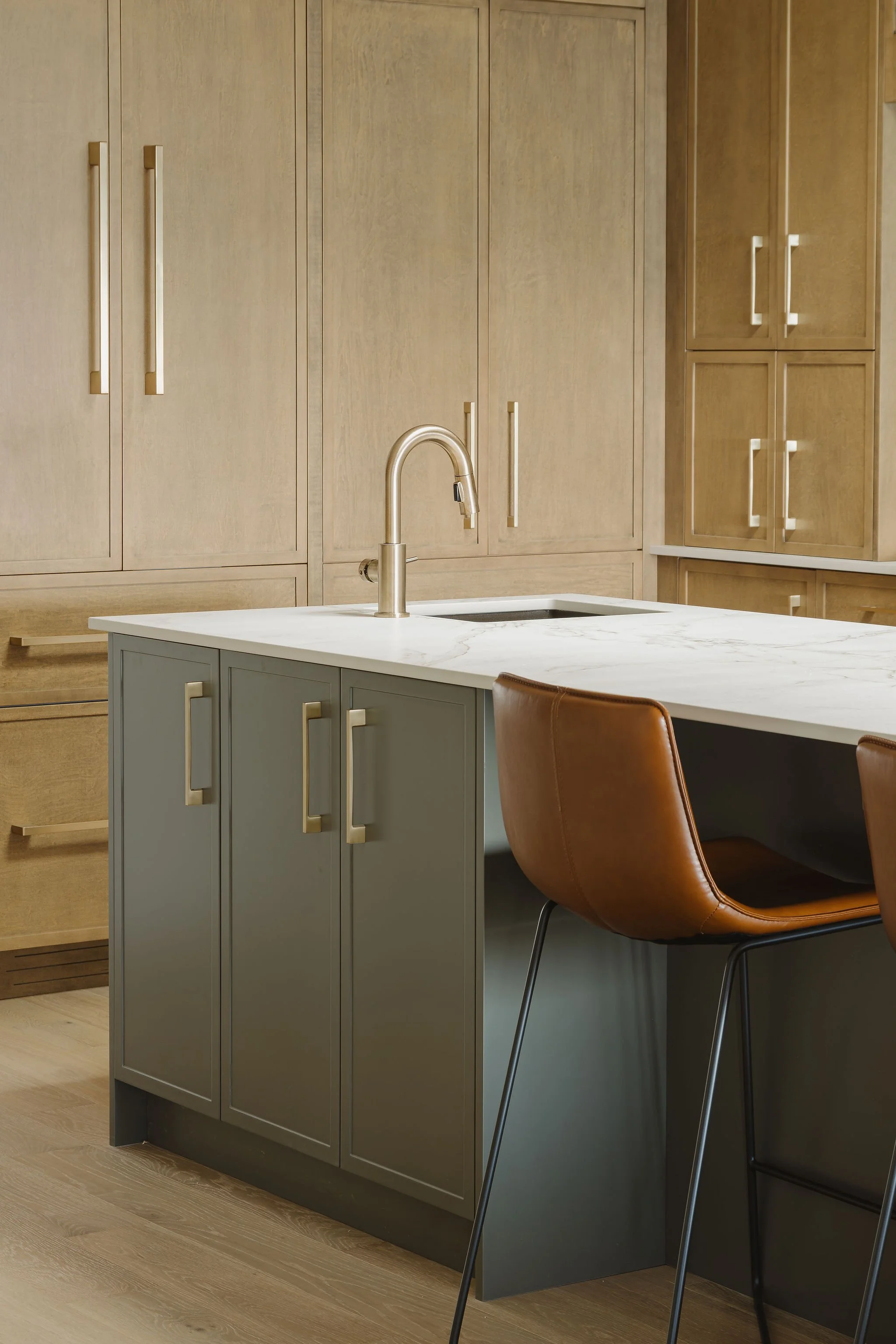 The Shelley Kitchen & Bath Renovation in St. Catharines features a modern yet warm design with slim shaker cabinetry in Maple Masala and a Sagebrush island. Thoughtful details like dovetail drawers, a bread drawer, double-bin garbage pullout, corner pullout, and tray dividers elevate both function and form. Complete with a panel-ready fridge, built-in microwave, and Dekton Entzo countertops, this space showcases Carv’s commitment to craftsmanship and everyday livability.